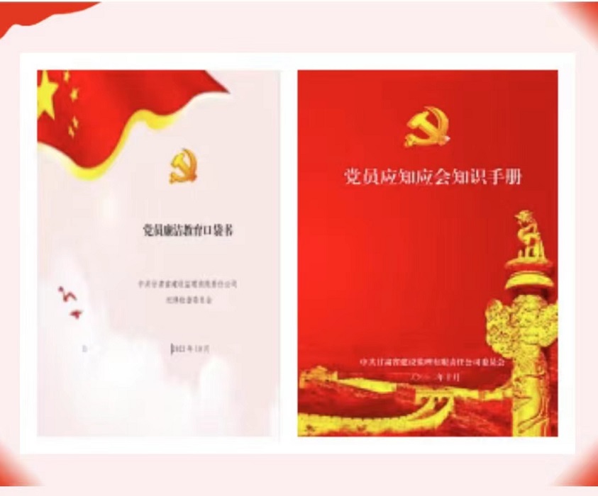 活動中,建設監(jiān)理公司黨委還為黨員精心制作了《黨員廉潔教育口袋書》及《黨員應知應會知識手冊》,篩選出黨紀黨規(guī)、黨建常識、名言警句、家風家教、廉潔從業(yè)等各方面的常用知識,方便黨員學習使用。此次系列黨建活動不但拓展了黨員干部職工的學習途徑,豐富了黨建宣傳形式,更有助于進一步提升黨員的政治素質和對黨建工作的認知,凝聚廉政廉潔、風清氣正的思想共識。