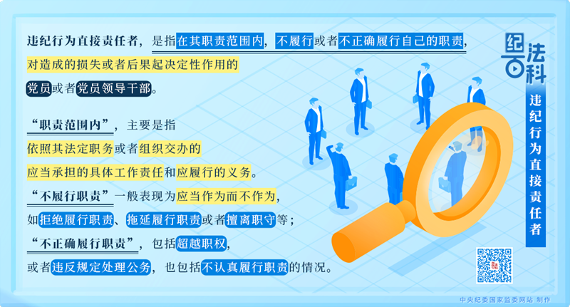 違紀(jì)行為直接責(zé)任者,是指在其職責(zé)范圍內(nèi),不履行或者不正確履行自己的職責(zé),對造成的損失或者后果起決定性作用的黨員或者黨員領(lǐng)導(dǎo)干部。