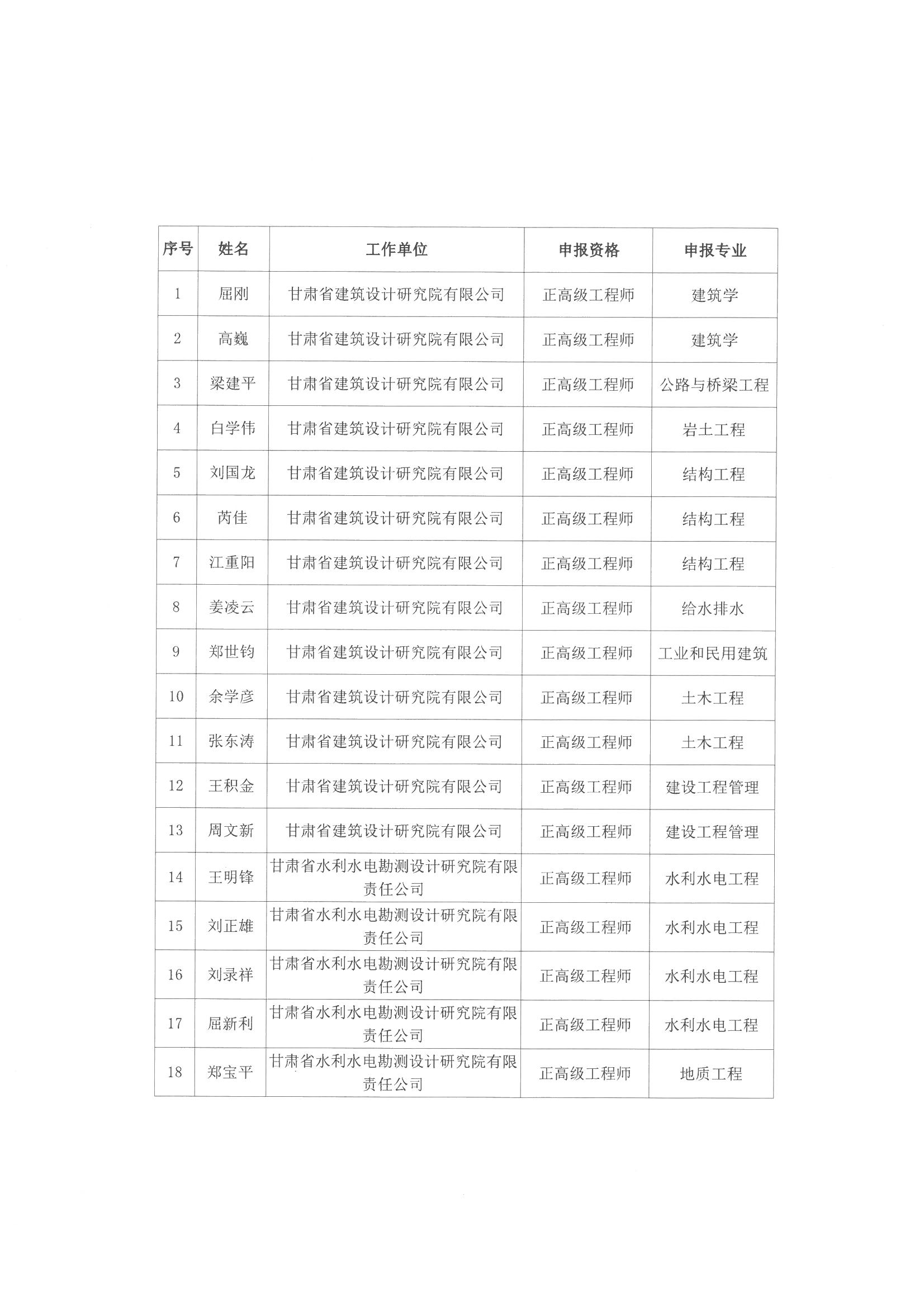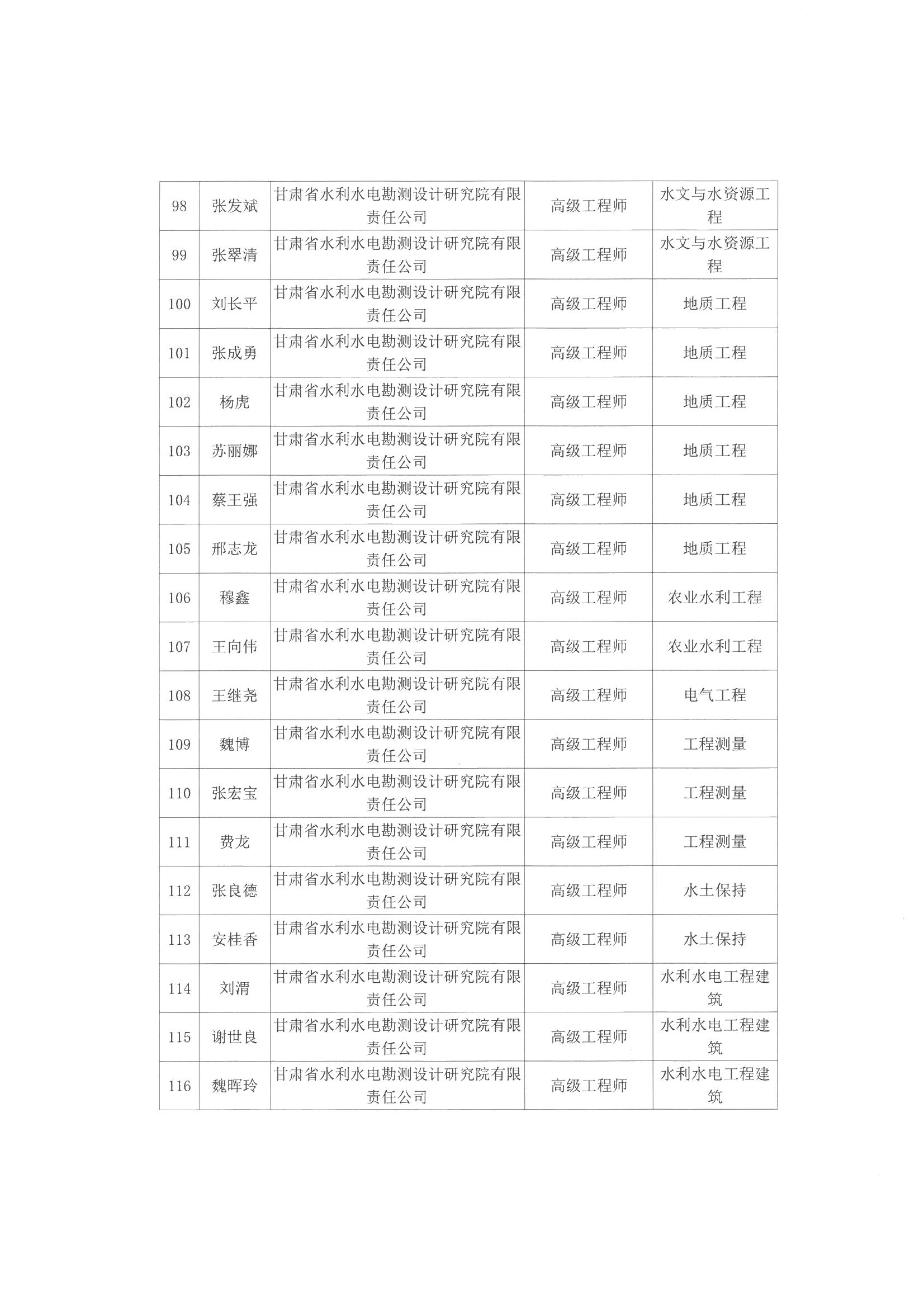 經(jīng)2019年12月30日甘肅工程咨詢集團(tuán)高評會代評中級職稱通過人員名單如下。公示期為5天,公示期間如有異議請與高評會辦公室聯(lián)系,聯(lián)系電話:7879357。