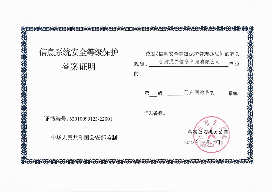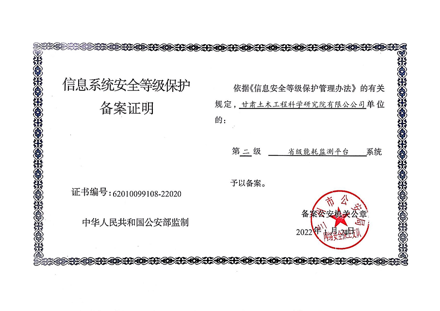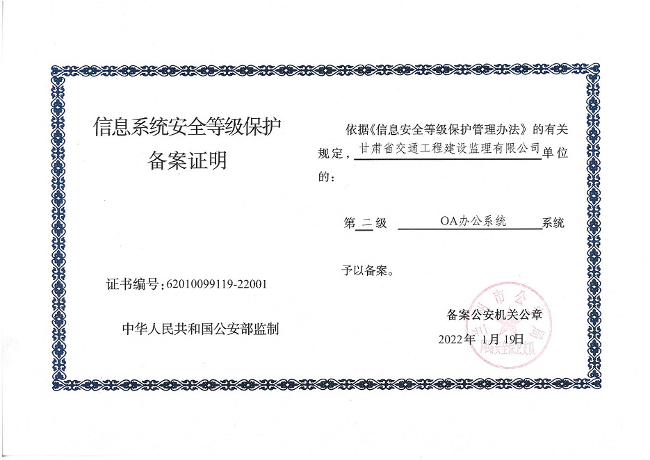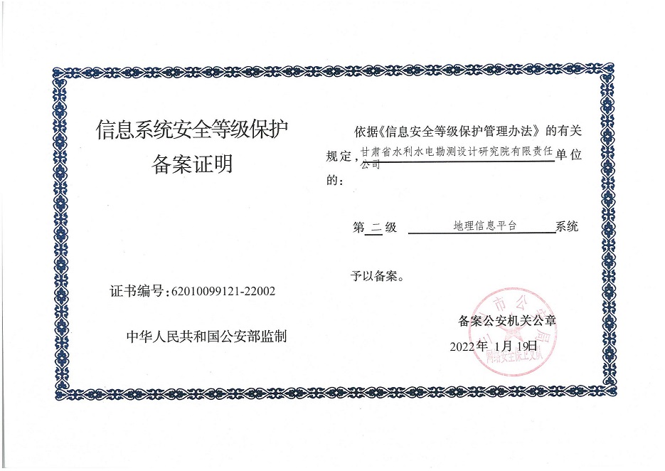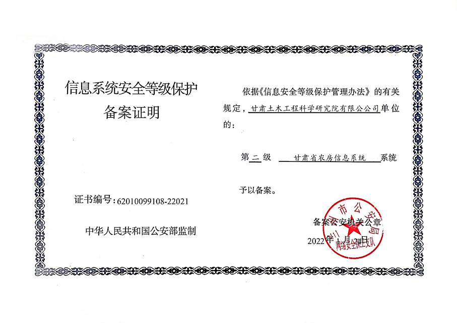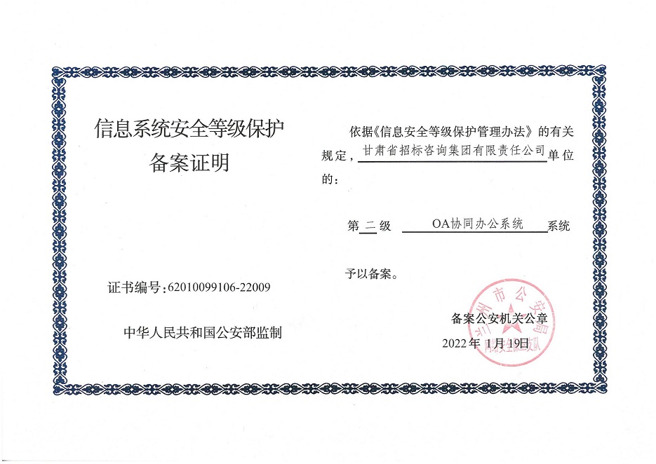 甘肅工程咨詢集團(tuán)股份公司信息系統(tǒng)通過安全等級保護(hù)2.0備案認(rèn)證