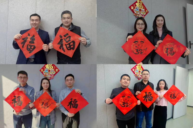 長桌排開,翰墨飄香,喜迎新春的氣氛撲面而來。職工書法愛好者們揮毫潑墨,一副副飽含濃濃春意和溫馨祝福的春聯(lián)揮筆寫就,職工們領(lǐng)取自己中意的“?!弊趾痛郝?lián)?!吧裰荽号胶有悖A夏龍騰日月新”“龍騰盛世千家喜,春滿神州萬物榮”……一副副春聯(lián)、一個個“福”字,承載著大家對新春的美好期盼。