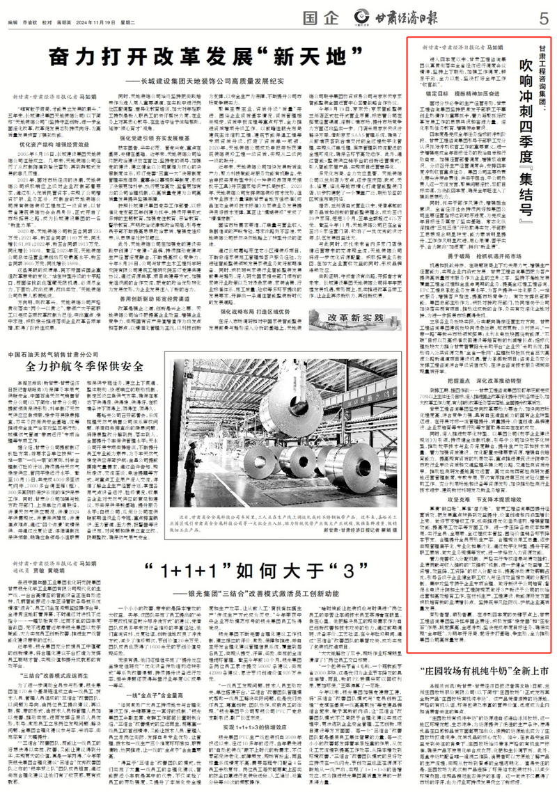 倒排工期、掛圖作戰(zhàn)……甘肅工程咨詢集團(tuán)緊盯年底前完成70%以上主體任務(wù)目標(biāo),深入推進(jìn)國企改革深化提升行動(dòng)各項(xiàng)任務(wù),加大改革工作力度,有力推動(dòng)改革任務(wù)落實(shí)落地,全面提升改革質(zhì)效。
