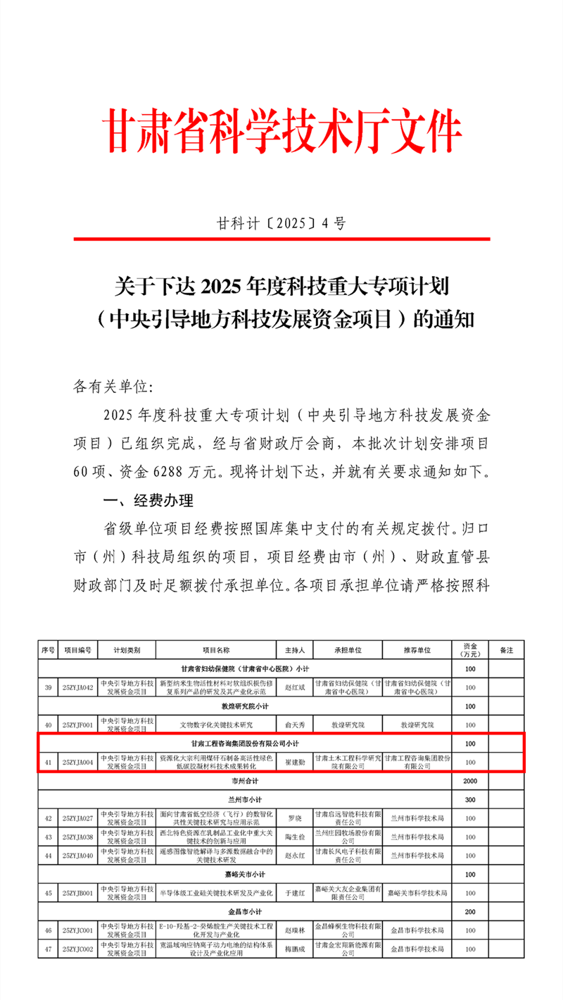 甘肅工程咨詢集團(tuán)1個科研項目獲科技重大專項計劃立項
