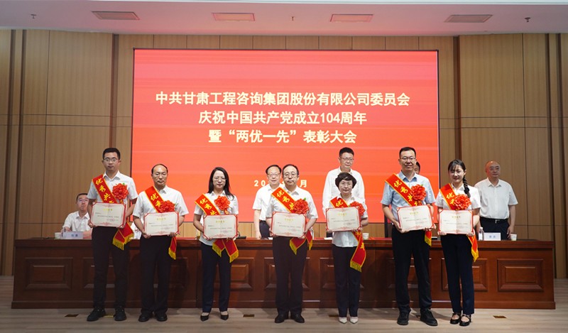 7月1日,甘肅工程咨詢集團(tuán)召開慶祝中國(guó)共產(chǎn)黨成立104周年暨“兩優(yōu)一先”表彰大會(huì),回顧黨的輝煌歷程,弘揚(yáng)偉大建黨精神,全面展示集團(tuán)黨建工作成效和黨員干部昂揚(yáng)風(fēng)貌,激勵(lì)各級(jí)黨組織和全體黨員凝心聚力、擔(dān)當(dāng)作為,奮力推動(dòng)集團(tuán)公司高質(zhì)量發(fā)展邁向新臺(tái)階。集團(tuán)公司黨委書記、董事長(zhǎng)張佩峰出席并講話,總經(jīng)理、董事陳一夫及在家領(lǐng)導(dǎo)班子成員出席,黨委委員、副總經(jīng)理孟康榮宣讀表彰決定,紀(jì)委書記、監(jiān)察專員師宗正主持會(huì)議。