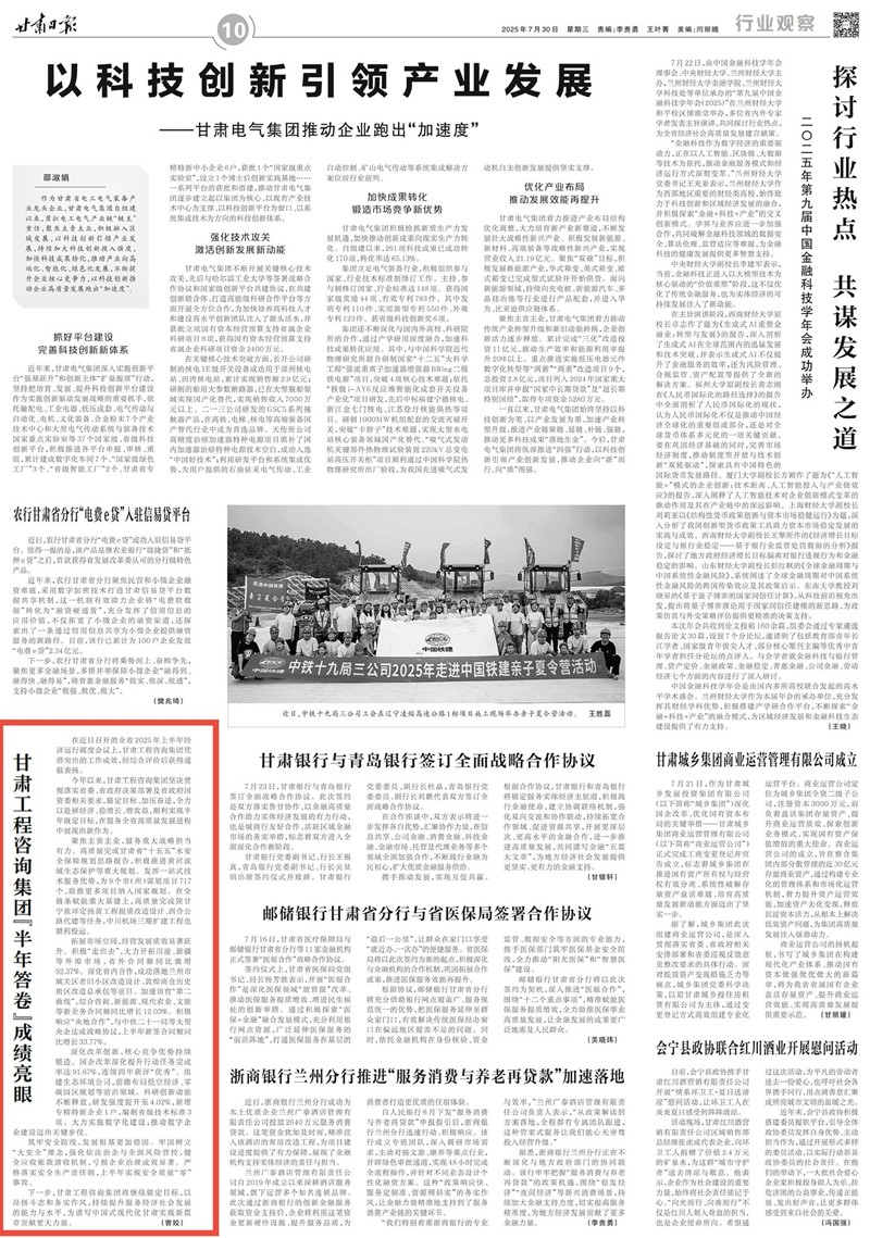 拓展市場空間,經(jīng)營發(fā)展質(zhì)效顯著躍升。積極“走出去”,大力開拓川渝、新疆等外埠市場,省外合同額同比激增92.37%。深化省內(nèi)合作,成功落地蘭州市城關(guān)區(qū)老舊小區(qū)改造設計、敦煌南倉歷史街區(qū)改造總承包等項目。加速培育“第二曲線”,綜合咨詢、新能源、現(xiàn)代農(nóng)業(yè)、文旅等新業(yè)務合同額同比增長12.03%。積極響應“央地合作”,與中鐵二十一局等大型央企達成戰(zhàn)略協(xié)議,上半年新簽合同額同比增長33.77%。