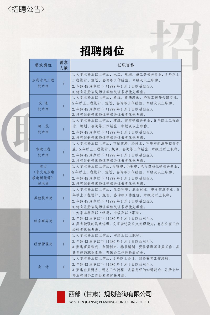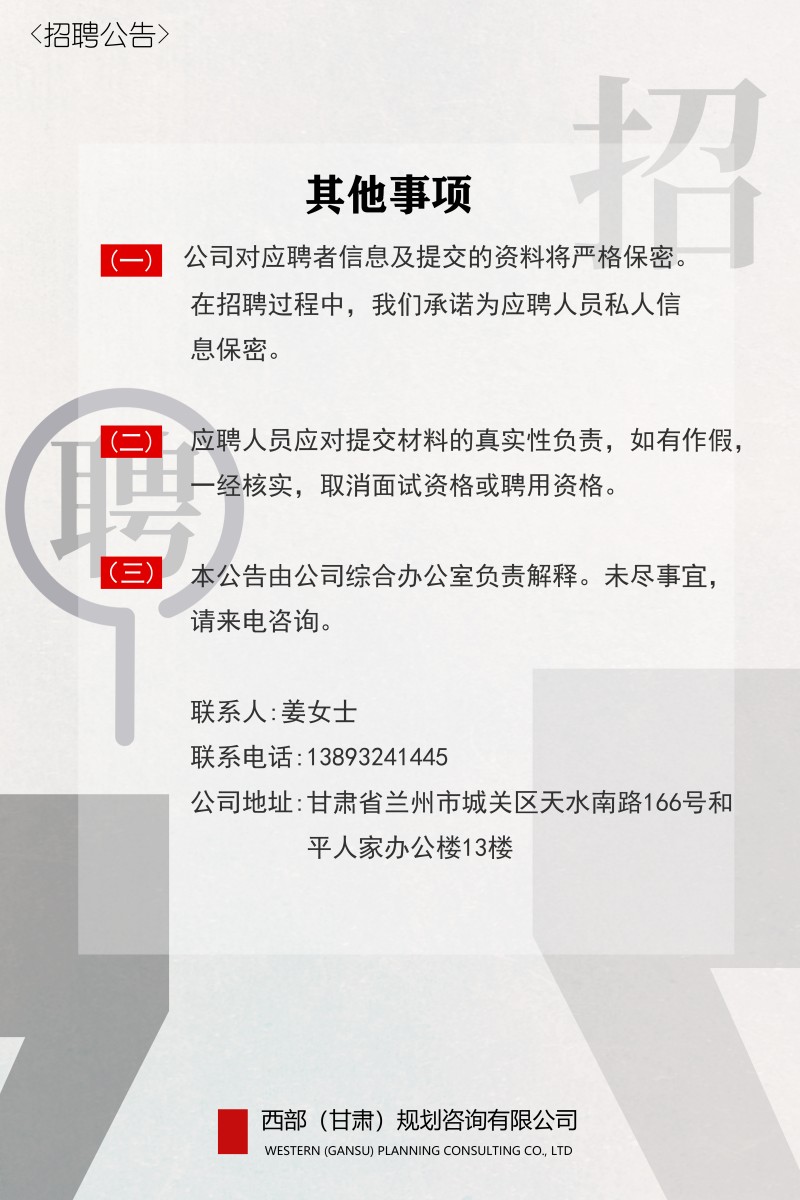 西部(甘肅)規(guī)劃咨詢有限公司2023年招聘公告