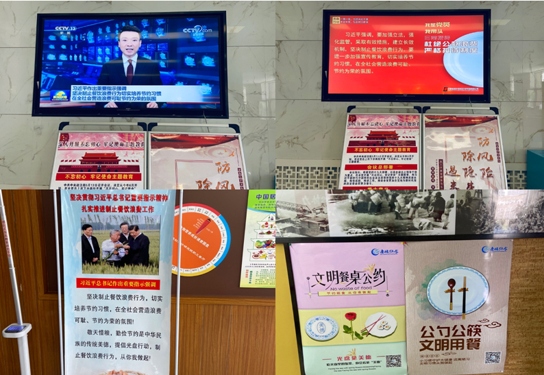 通過在公司一樓大廳的LED屏上滾動(dòng)播放習(xí)近平總書記提出杜絕餐飲浪費(fèi)的重要指示、制作播放關(guān)于節(jié)約用餐、文明用餐的PPT、在宣傳欄和食堂醒目位置張貼宣傳圖片和條幅標(biāo)語等,遏制“舌尖上的浪費(fèi)”,消除“剩宴”,最大限度減少餐飲浪費(fèi)。廣大黨員干部還簽訂《杜絕餐飲浪費(fèi)承諾書》,充分發(fā)揮黨員表率作用,以黨員帶動(dòng)群眾,在公司范圍內(nèi)營造浪費(fèi)可恥、節(jié)約為榮的良好氛圍。