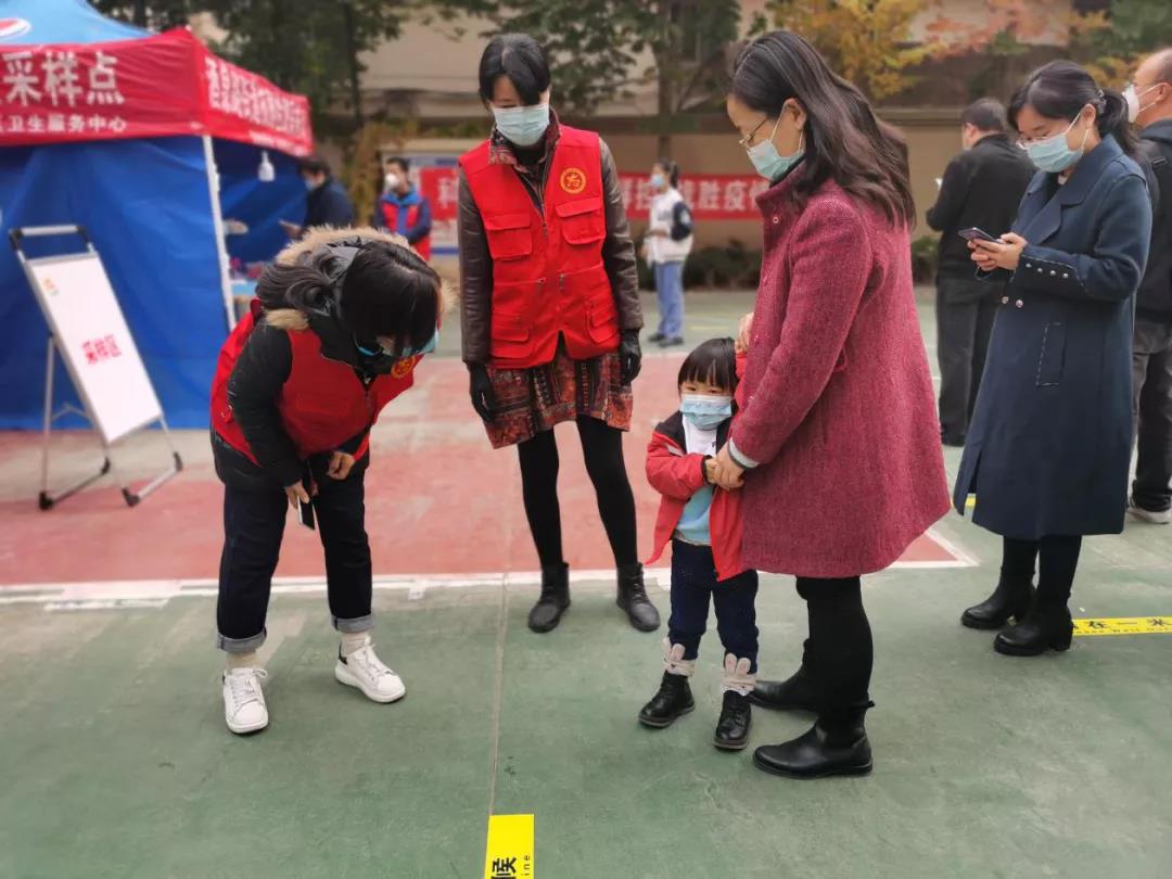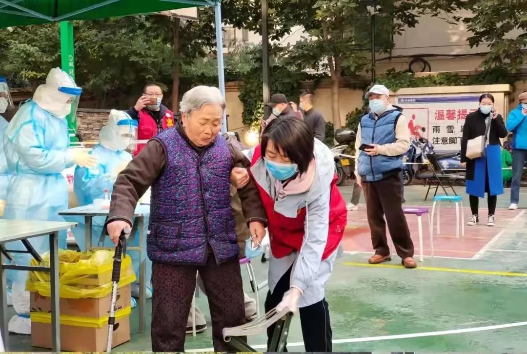 號(hào)令一出,不到半個(gè)小時(shí)時(shí)間,300多人的志愿隊(duì)伍已組建就緒。當(dāng)天下午,第一批志愿者隊(duì)伍,統(tǒng)一身穿紅馬甲,佩戴口罩,迅速奔赴南關(guān)夜市、伊真大廈、五泉街道、外國語中學(xué)等多個(gè)檢測點(diǎn)開展志愿服務(wù)。而女志愿服務(wù)者則更成為了深秋季節(jié)疫情防控一線最靚麗的一道風(fēng)景?!澳?,請?zhí)嵩绱蜷_微信健康出行碼”“請大家不要扎堆聚集,按照1米線要求,有序排隊(duì)”“請黃碼人員、老人、孕婦和小孩走綠色通道”……一聲聲溫馨提示,一次次貼心攙扶,都是她們最溫情的守護(hù)。