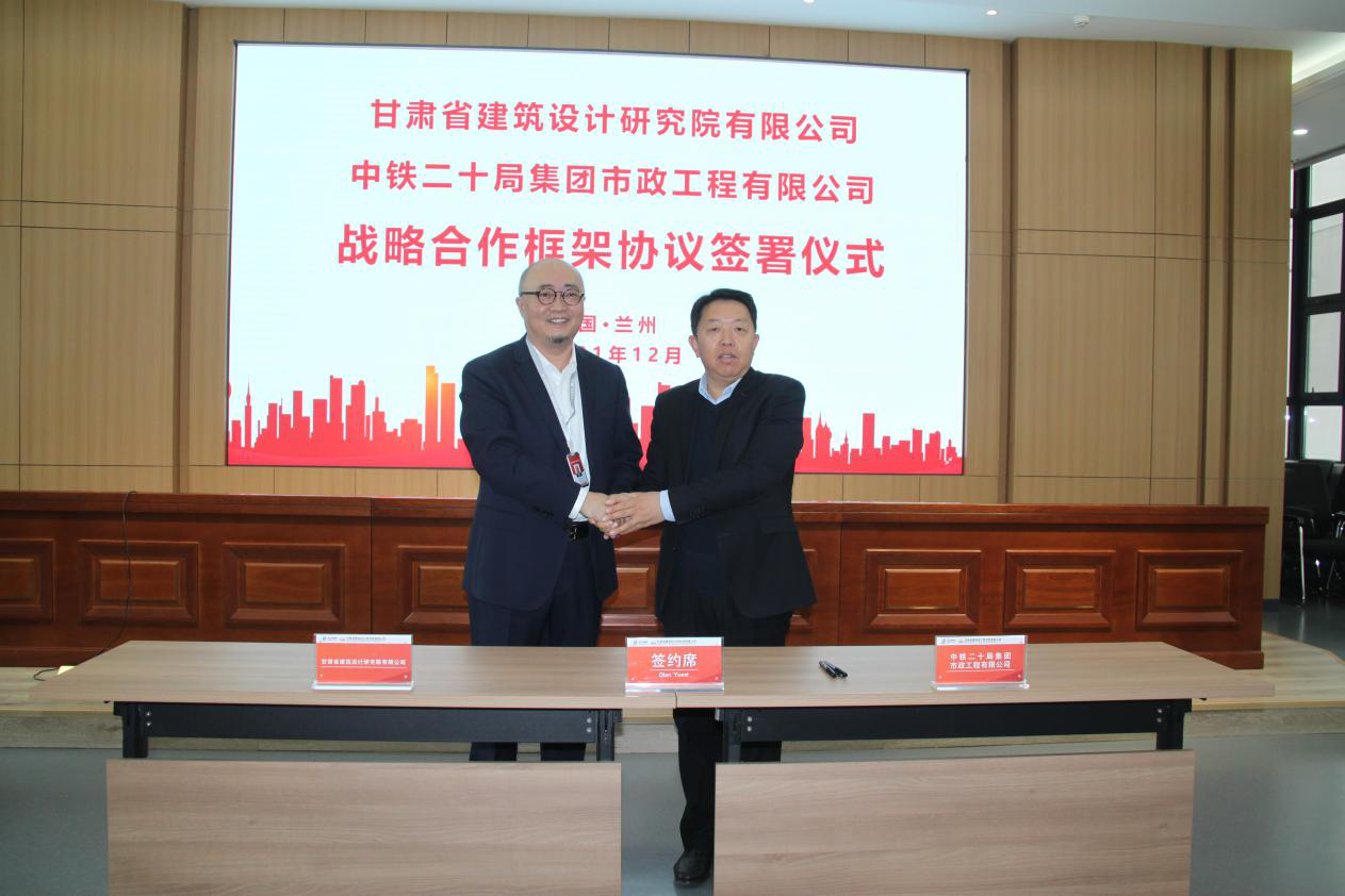 近日,建筑設(shè)計院與中鐵二十局市政公司在建筑設(shè)計院會議中心舉行戰(zhàn)略合作框架協(xié)議簽署儀式。中鐵二十局黨委常委、副總經(jīng)理苗文懷,西北區(qū)域指揮部總經(jīng)理田培忠,市政公司黨委書記、董事長萬雪琳,房地產(chǎn)公司總經(jīng)理崔野,建筑設(shè)計院董事長米宏圖、黨委書記李向軍、總經(jīng)理曹慶、副總經(jīng)理周文新等出席簽約儀式。