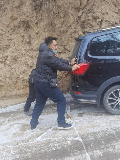 很多在隱患點上的行政村分布在舟曲縣周邊的大山高處,又逢舟曲剛下完大雪,山路崎嶇,道路積雪結(jié)冰,即使在車上套上防滑鏈還是無法到達一些村落。面對重重困難,工程師們沒有退縮,當(dāng)積雪太深或結(jié)冰地路面太滑,車輛完全無法通行時,他們或推車前行,或頂風(fēng)冒雪,深一腳淺一腳地步行好幾公里,走到開展工作的村子里去。