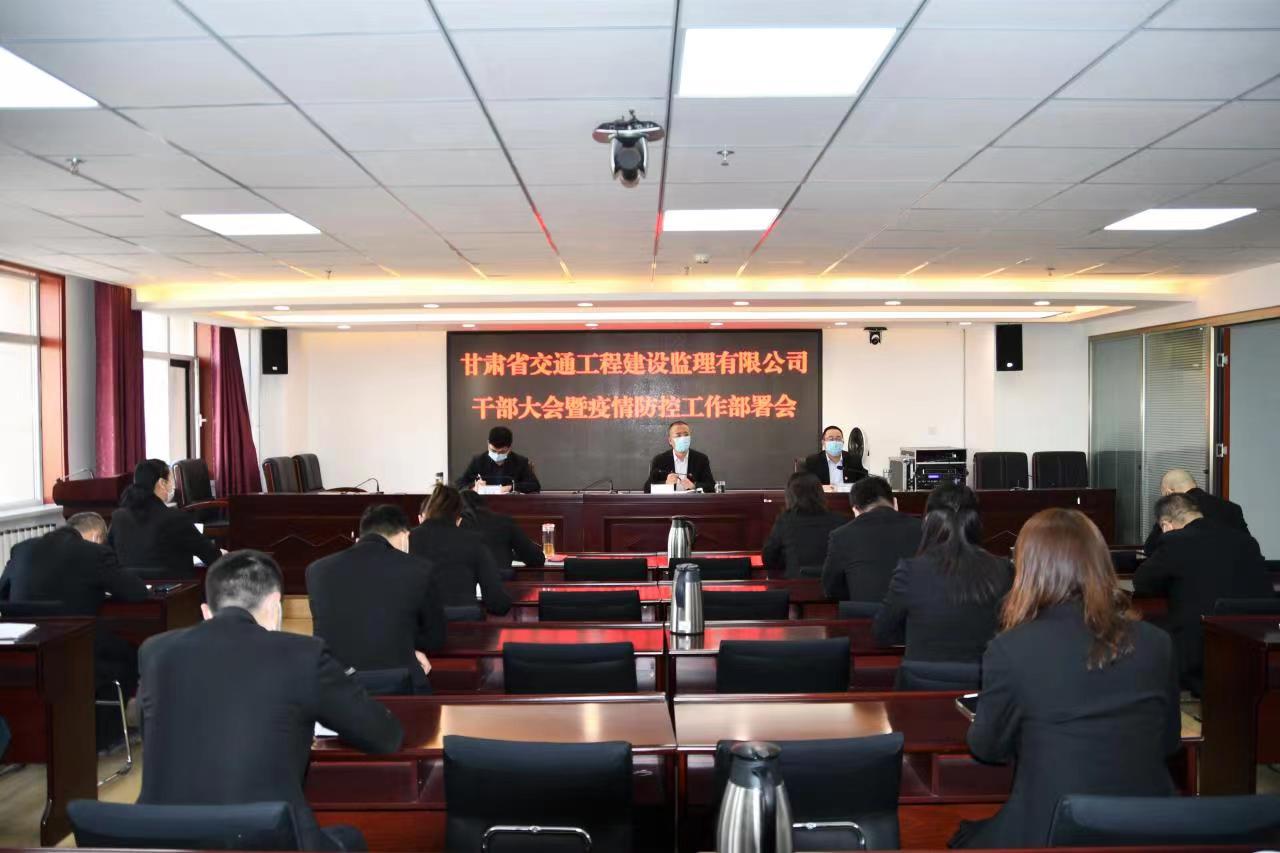 3月10日,甘肅省交通工程建設(shè)監(jiān)理有限公司召開(kāi)干部大會(huì)暨疫情防控工作部署會(huì)。領(lǐng)導(dǎo)班子成員、機(jī)關(guān)全體干部職工在主會(huì)場(chǎng)參會(huì),各子公司、項(xiàng)目機(jī)構(gòu)在分會(huì)場(chǎng)參會(huì)。會(huì)議由黨委書記、董事長(zhǎng)張吉主持。