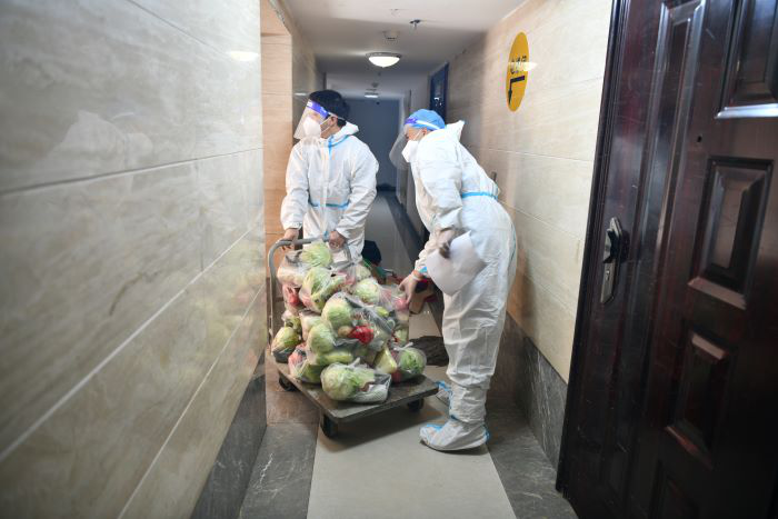 近日,根據(jù)疫情防控要求,建筑設(shè)計院協(xié)同轄區(qū)街道防疫部門對職工家屬區(qū)個別單元進(jìn)行封控管理,樓內(nèi)全體人員就地隔離觀察。為了保障職工群眾居家隔離期間的正常生活,建筑設(shè)計院及時采購新鮮蔬菜,送菜上門,將企業(yè)的關(guān)懷與溫暖送到職工的手中。
