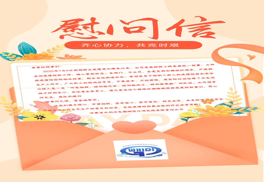 同時(shí),注重加強(qiáng)人文關(guān)懷。水電設(shè)計(jì)院黨委對集中隔離的員工進(jìn)行了一對一電話連線慰問,并向全體員工致信,對堅(jiān)守一線員工、志愿者和居家辦公人員給予鼓勵(lì),鼓舞大家消除不安緊張情緒,提振精神、鼓舞士氣,動員廣大員工積極配合和參與疫情防控,及時(shí)做好心理疏導(dǎo),保證員工隊(duì)伍情緒穩(wěn)定。