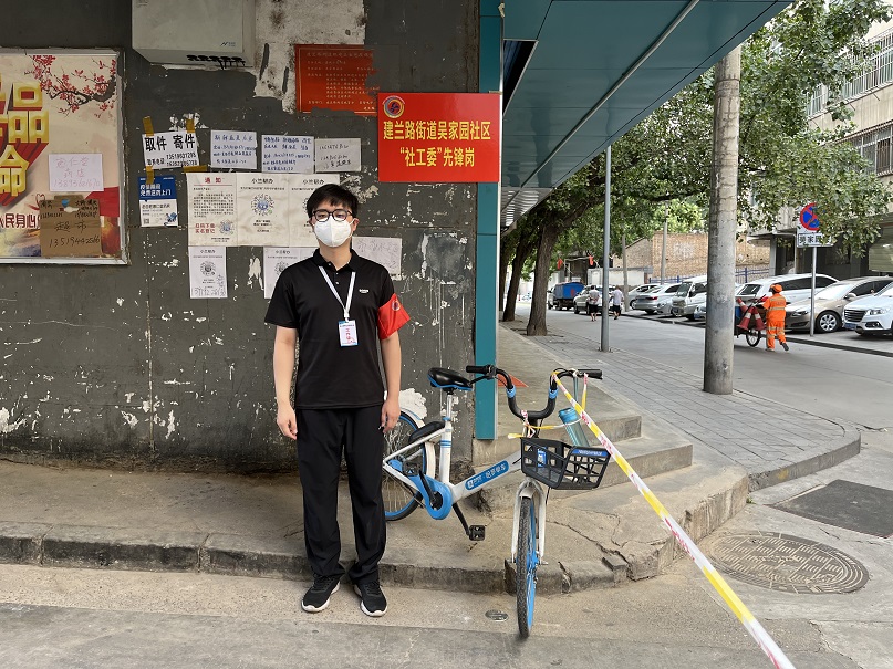 “你好,目前這里不允許人員進出,請問有什么事嗎?”這是志愿者權(quán)浩每天重復(fù)無數(shù)次的提問。本輪疫情發(fā)生以后,他就主動請纓,根據(jù)安排前往吳家園社區(qū)家具四場值守點進行卡點值守任務(wù)。他所負(fù)責(zé)值守的卡點情況復(fù)雜,封控區(qū)域內(nèi)居民、租戶、獨居老人較多,卡口附近有藥店、菜鋪,因此很多居民都想外出采購。每每遇到這樣的情況,他總是耐心地向居民解釋防疫政策并盡力提供幫助。權(quán)浩表示,疫情當(dāng)前,作為社區(qū)居民健康的守護者,深知自身工作的重要性和肩負(fù)的責(zé)任,面對各種困難,他都會積極協(xié)調(diào)、認(rèn)真處理。“工作中我們微笑多一些、態(tài)度好一點,居民的理解和信任也就多一些。我會爭取讓群眾理解和配合我們的工作,我相信在大家的共同努力下,疫情終會退去?!焙唵蔚脑捳Z中,透出的是他樂觀積極的心態(tài)和甘于奉獻(xiàn)的決心。