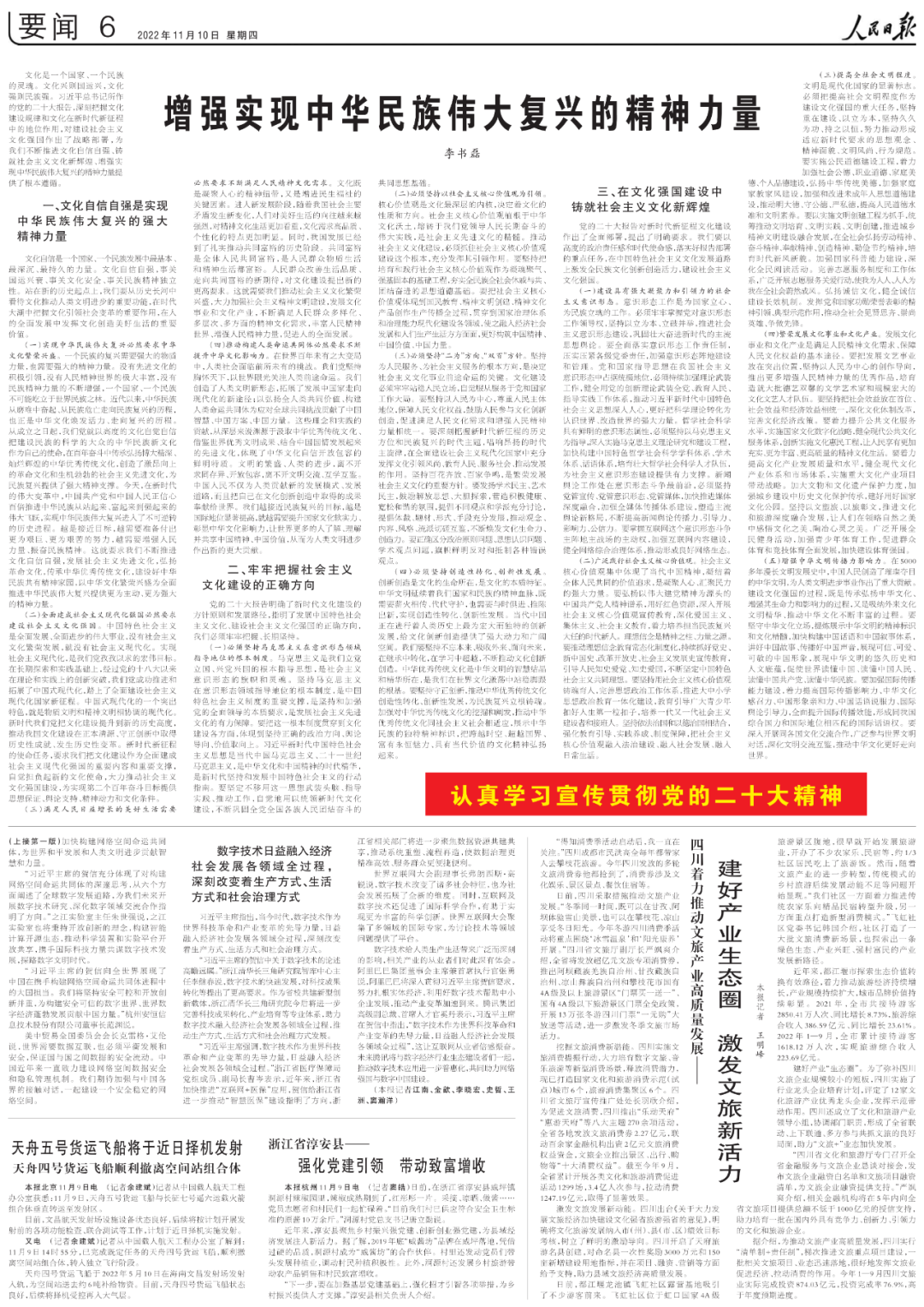 文化是一個(gè)國家、一個(gè)民族的靈魂。文化興則國運(yùn)興,文化強(qiáng)則民族強(qiáng)。習(xí)近平總書記所作的黨的二十大報(bào)告,深刻把握文化建設(shè)規(guī)律和文化在新時(shí)代新征程中的地位作用,對建設(shè)社會(huì)主義文化強(qiáng)國作出了戰(zhàn)略部署,為我們不斷推進(jìn)文化自信自強(qiáng)、鑄就社會(huì)主義文化新輝煌、增強(qiáng)實(shí)現(xiàn)中華民族偉大復(fù)興的精神力量提供了根本遵循。